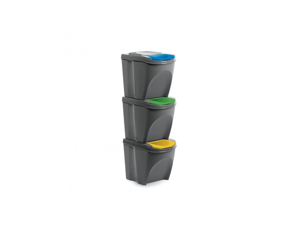 Kôš odpadkový, SORT, 3 x 21 l, ŠEDÝ
