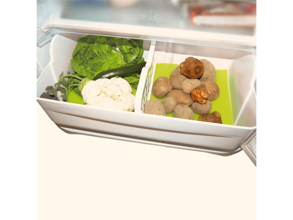 Podložka pod zeleninu vhodná do úložných boxov na zeleninu a ovocie do chladničky. Je vyrobená zo špeciálneho pórovitého materiálu. Jeho štruktúra umožňuje vynikajúcu cirkuláciu vzduchu a zeleninu aj ovocie v chladničke dlhšie čerstvé. Rozmer (šxdxv): 47x30x0,7 cm. Materiál: 100 % polyuretán.Dodatočné parametre