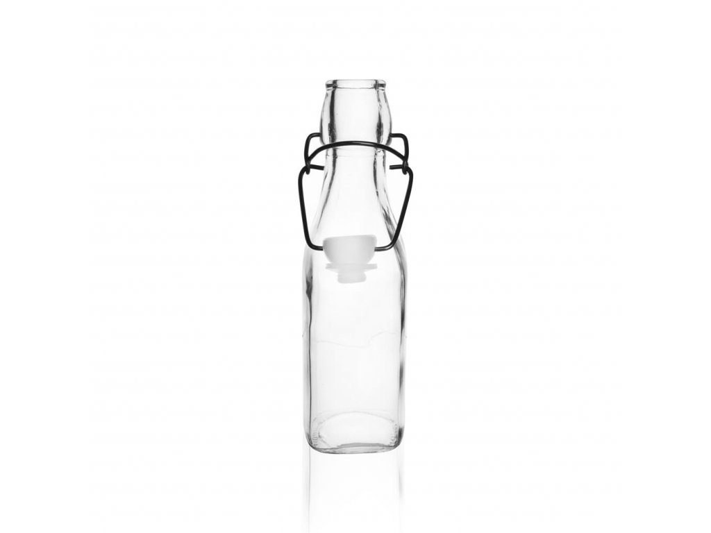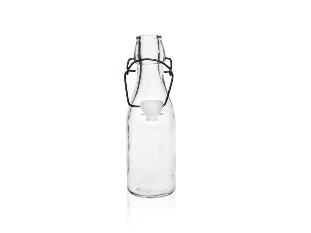 Praktická sklenená fľaša na uschovanie rôzneho druhu alkoholu, domácich sirupov alebo likérov. Vďaka svojmu kovovému patentu so silikónovým tesnením, sa do dózy nedostane žiaden nežiadúci hmyz. Je vhodná aj do umývačky riadu. Rozmery: objem 0,29 l, 5x5x20 cm. Materiál: sklo, silikón, kov.Dodatočné parametre