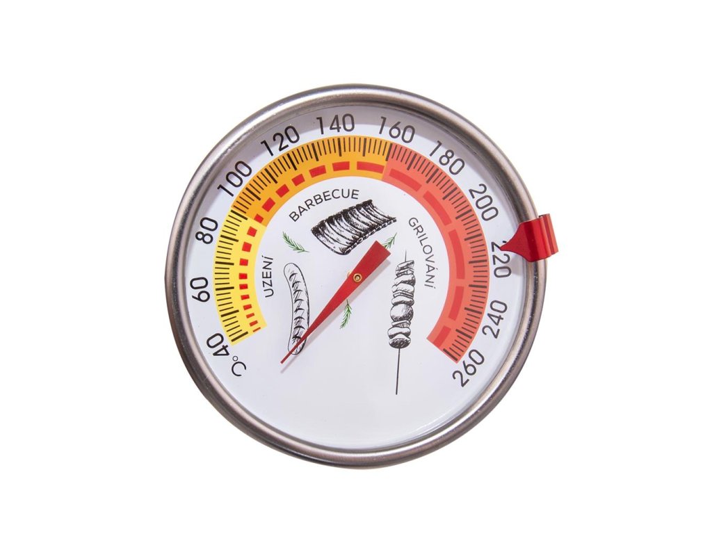 Neodmysliteľná pomôcka pre gurmánov pri príprave mäsa. Majte teplotu v udiarni pri príprave mäsa pod kontrolou. So slovným popisom na teplotnej škále grilovanie/barbecue/grilovanie. Meria teplotu od 40 °C do 260 °C, stupnica po 10 °C. Materiál: nerez, sklo, hliník. Rozmery: priemer 7,5 cm, dĺžka 33 cm. Nie je vhodný do umývačky na riad.Dodatočné parametre