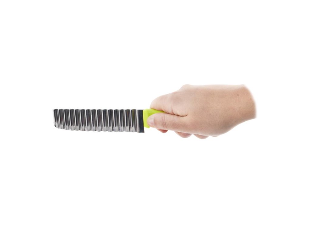 Nôž s vlnovitou čepeľou je vyrobená z kvalitnej nehrdzavejúcej ocele v kombinácii s plastom. Je vytvarovaný tak, aby sa s ním skvelo krájalo a manipulovalo, nakrájaná zelenina bude mať vlnovitý alebo mriežkovaný tvar. S ostrou čepeľou sa krája veľmi príjemne a presne. Skvelý pomocník do každej. kuchyne. Je vhodný do umývačky riadu. Materiál: oceľ, plast. Rozmery: celková dĺžka 23 cm, dľžka čepele 10 cm.Dodatočné parametre