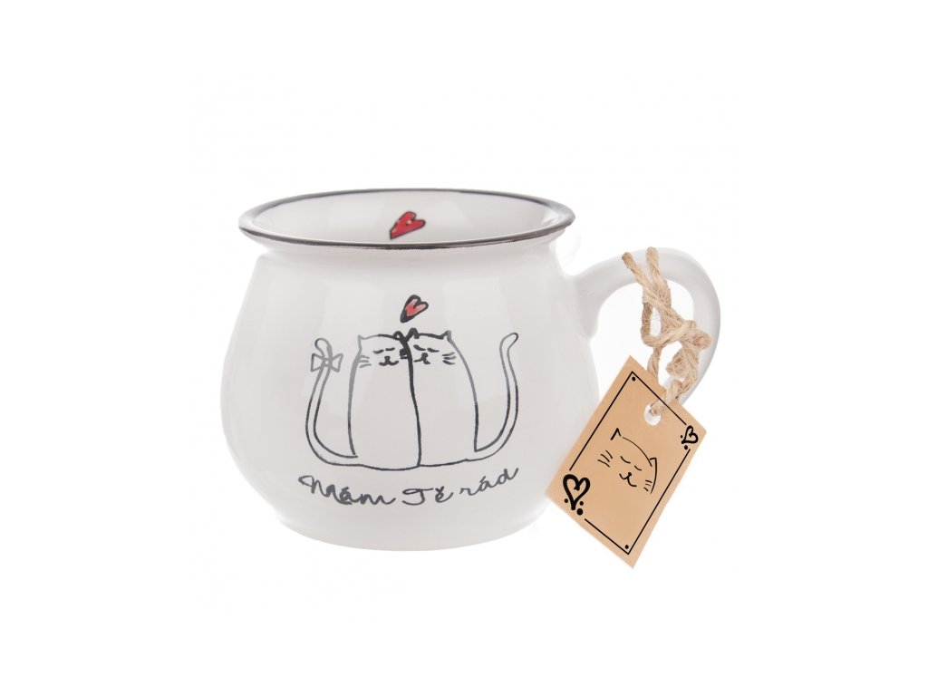 Hrnček keramika, CATS MÁM ŤA RÁD, 0,32 l. Nenahraditeľný pomocník. Možno umývať v umývačke riadu a ohrievať v mikrovlnnej rúre. Materiál: keramika. Objem: 0,32 l, priemer: 9,5 cm, výška: 7,5 cm.Dodatočné parametre